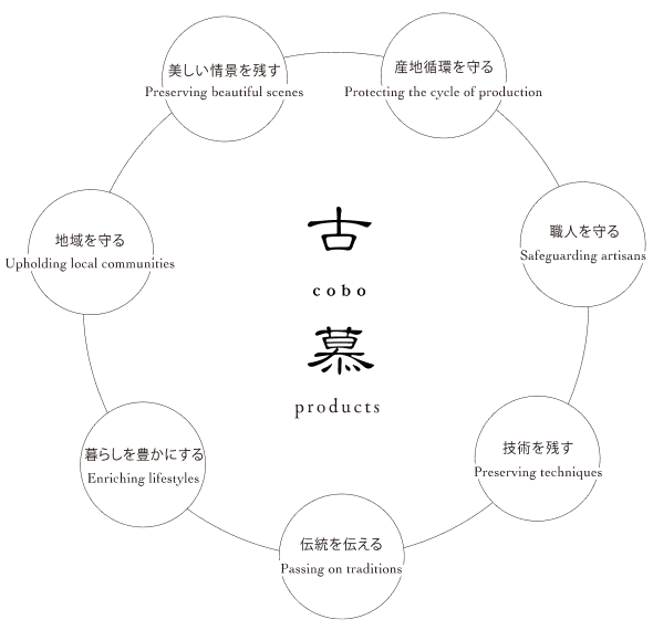 - 「古慕」のプロダクトで美しい情景を紡ぎ、伝統や⽂化、技術が⽣きるサイクルをつくる。